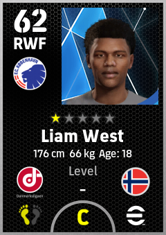 . Liam West is a Right Wing Forward footballer from Norway who plays for København Hb in eFootball 2026.