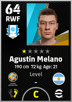 . Agustin Melano is a Right Wing Forward footballer from Argentina who plays for Alberdi A in eFootball 2026.