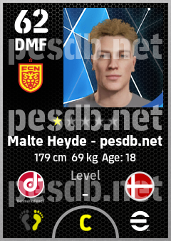 . Malte Heyde is a Defensive Midfielder footballer from Denmark who plays for Nordsjælland Rg in eFootball 2026.