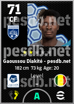 . Gaoussou Diakité is a Center Forward footballer from Mali who plays for Lausanne Bw in eFootball 2026.