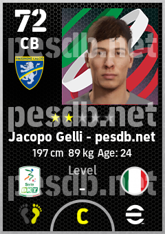 . Jacopo Gelli is a Center Back footballer from Italy who plays for Frosinone Ga in eFootball 2026.