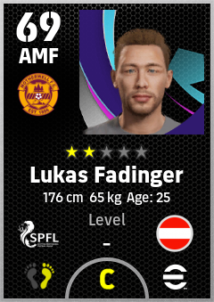 . Lukas Fadinger is a Attacking Midfielder footballer from Austria who plays for Motherwell Fc in eFootball 2026.