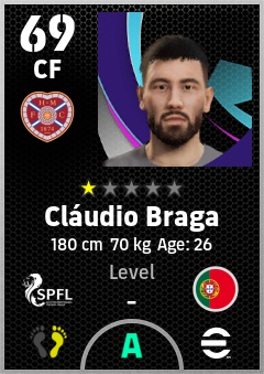 . Cláudio Braga is a Center Forward footballer from Portugal who plays for Heart Of Midlothian Fc in eFootball 2026.