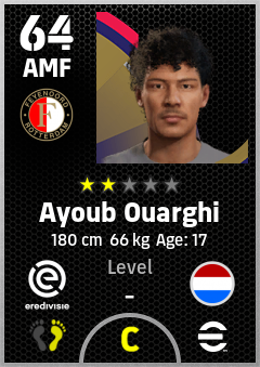 . Ayoub Ouarghi is a Attacking Midfielder footballer from Netherlands who plays for Feyenoord in eFootball 2026.