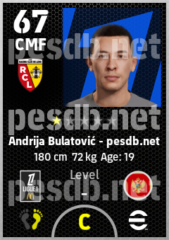 . Andrija Bulatović is a Center Midfielder footballer from Montenegro who plays for Rc Lens in eFootball 2026.