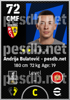 . Andrija Bulatović is a Center Midfielder footballer from Montenegro who plays for Rc Lens in eFootball 2026.