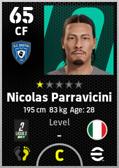 . Nicolas Parravicini is a Center Forward footballer from Italy who plays for Sc Bastia in eFootball 2026.