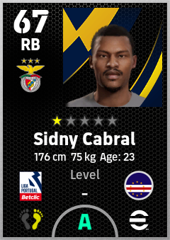 . Sidny Cabral is a Right Back footballer from Cabo Verde who plays for Sl Benfica in eFootball 2026.