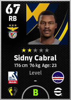 . Sidny Cabral is a Right Back footballer from Cabo Verde who plays for Sl Benfica in eFootball 2026.