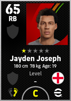 . Jayden Joseph is a Right Back footballer from England who plays for Free in eFootball 2026.