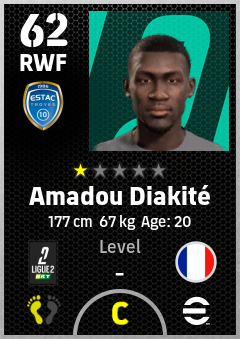 . Amadou Diakité is a Right Wing Forward footballer from France who plays for Estac Troyes in eFootball 2026.