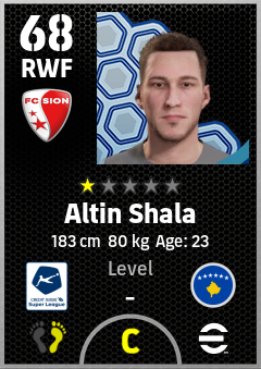 . Altin Shala is a Right Wing Forward footballer from Kosovo who plays for Sion Rw in eFootball 2026.