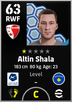 . Altin Shala is a Right Wing Forward footballer from Kosovo who plays for Sion Rw in eFootball 2026.