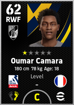 . Oumar Camara is a Right Wing Forward footballer from France who plays for Vitória Sc in eFootball 2026.