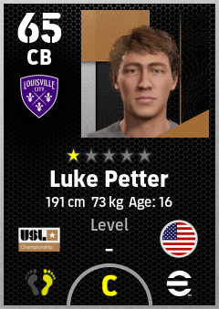 . Luke Petter is a Center Back footballer from United States who plays for Louisville City Fc in eFootball 2026.