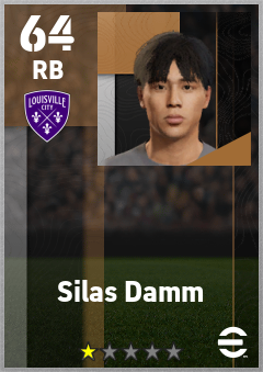 . Silas Damm is a Right Back footballer from United States who plays for Louisville City Fc in eFootball 2026.