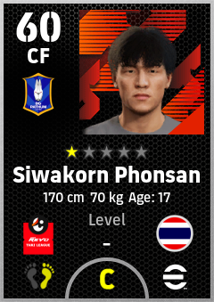 Siwakorn Phonsan is a Center Forward footballer from Thailand who plays for Bg Pathum United Fc in eFootball 2026.