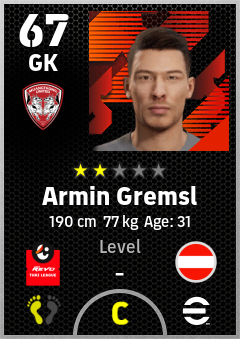 . Armin Gremsl is a Goalkeeper footballer from Austria who plays for Muangthong United Fc in eFootball 2026.