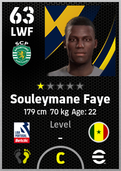 . Souleymane Faye is a Left Wing Forward footballer from Senegal who plays for Sporting Cp in eFootball 2026.