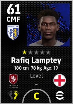 . Rafiq Lamptey is a Center Midfielder footballer from England who plays for Millwall Bw in eFootball 2026.