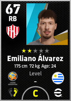 . Emiliano Álvarez is a Right Back footballer from Uruguay who plays for Santa Fe Rb in eFootball 2026.