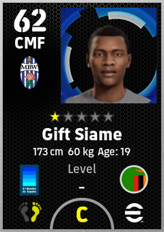 . Gift Siame is a Center Midfielder footballer from Zambia who plays for Leganés Ab in eFootball 2026.