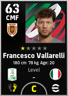 . Francesco Vallarelli is a Center Midfielder footballer from Italy who plays for Reggio Emilia G in eFootball 2026.