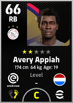 . Avery Appiah is a Right Back footballer from Netherlands who plays for Ajax in eFootball 2026.