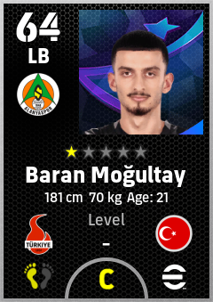 . Baran Moğultay is a Left Back footballer from Türkiye who plays for Corendon Alanyaspor in eFootball 2026.