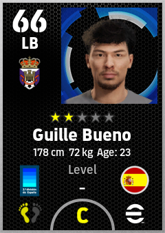 . Guille Bueno is a Left Back footballer from Spain who plays for Valladolid Mb in eFootball 2026.