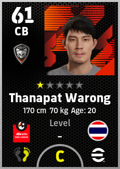 . Thanapat Warong is a Center Back footballer from Thailand who plays for Nakhonratchasima Fc in eFootball 2026.