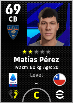 . Matías Pérez is a Center Back footballer from Chile who plays for Lecce Gr in eFootball 2026.