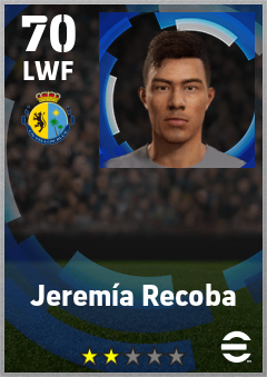. Jeremía Recoba is a Left Wing Forward footballer from Uruguay who plays for Las Palmas Aa in eFootball 2026.