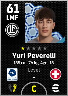 . Yuri Peverelli is a Left Midfielder footballer from Switzerland who plays for Lugano Sw in eFootball 2026.