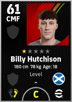 . Billy Hutchison is a Center Midfielder footballer from Scotland who plays for Free in eFootball 2026.