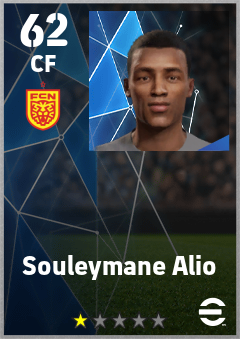 . Souleymane Alio is a Center Forward footballer from Burkina Faso who plays for Nordsjælland Rg in eFootball 2026.