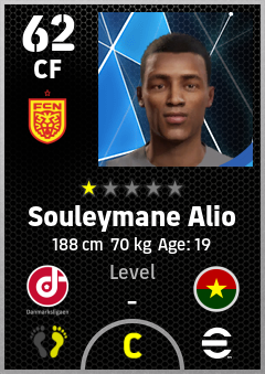 . Souleymane Alio is a Center Forward footballer from Burkina Faso who plays for Nordsjælland Rg in eFootball 2026.
