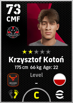 . Krzysztof Kotoń is a Center Midfielder footballer from Poland who plays for Denderleeuw Bzr in eFootball 2026.