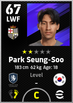 . Park Seung-Soo is a Left Wing Forward footballer from Korea Republic who plays for Newcastle Wb in eFootball 2026.