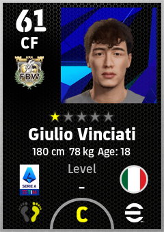 . Giulio Vinciati is a Center Forward footballer from Italy who plays for Udinese Calcio in eFootball 2026.