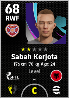 . Sabah Kerjota is a Right Wing Forward footballer from Albania who plays for Heart Of Midlothian Fc in eFootball 2026.