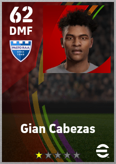 . Gian Cabezas is a Defensive Midfielder footballer from Colombia who plays for Pasto Raa in eFootball 2026.