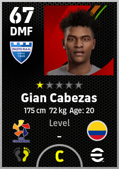 . Gian Cabezas is a Defensive Midfielder footballer from Colombia who plays for Pasto Raa in eFootball 2026.
