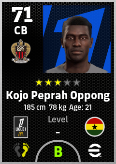 . Kojo Peprah Oppong is a Center Back footballer from Ghana who plays for Ogc Nice in eFootball 2026.