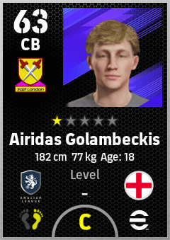. Airidas Golambeckis is a Center Back footballer from England who plays for West Ham Rb in eFootball 2026.