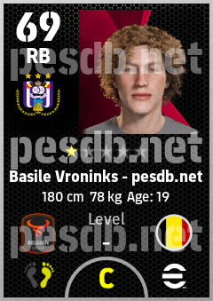 . Basile Vroninks is a Right Back footballer from Belgium who plays for Anderlecht Pw in eFootball 2026.