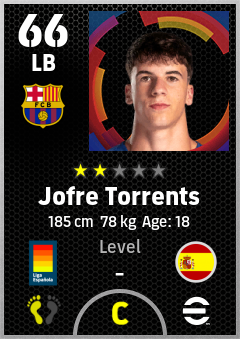 . Jofre Torrents is a Left Back footballer from Spain who plays for Fc Barcelona in eFootball 2026.
