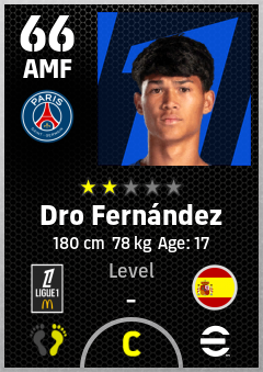 . Dro Fernández is a Attacking Midfielder footballer from Spain who plays for Paris Saint-Germain in eFootball 2026.