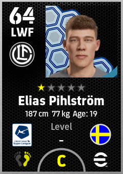 . Elias Pihlström is a Left Wing Forward footballer from Sweden who plays for Lugano Sw in eFootball 2026.