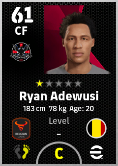 . Ryan Adewusi is a Center Forward footballer from Belgium who plays for Denderleeuw Bzr in eFootball 2026.